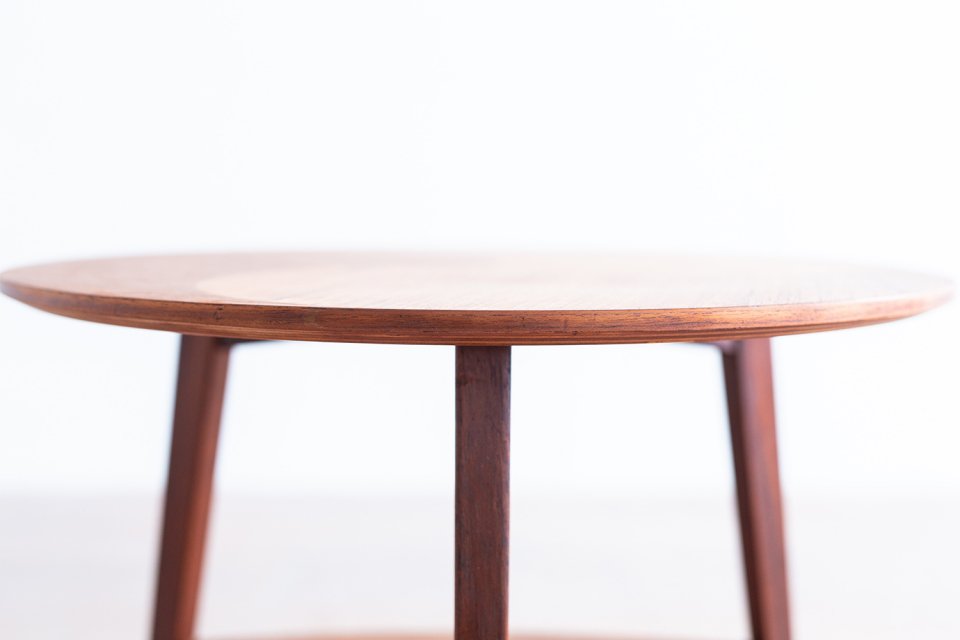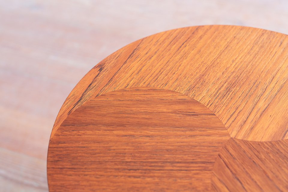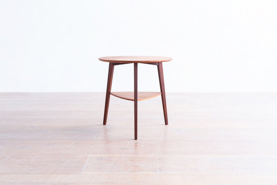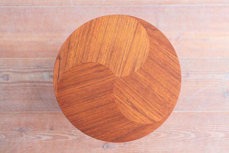 美しい寄木細工の天板が目をひく、凛とした佇まいのサイドテーブル。