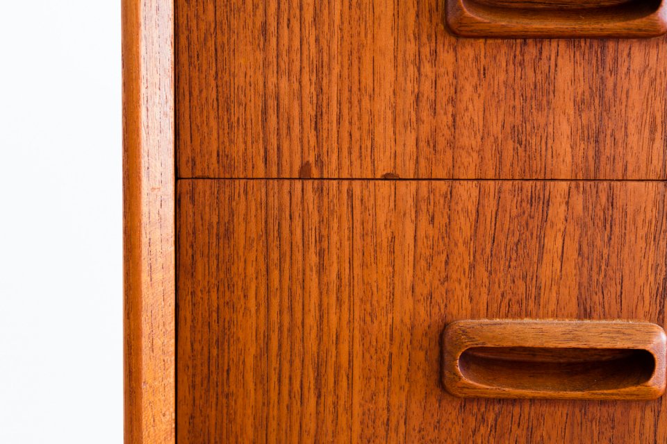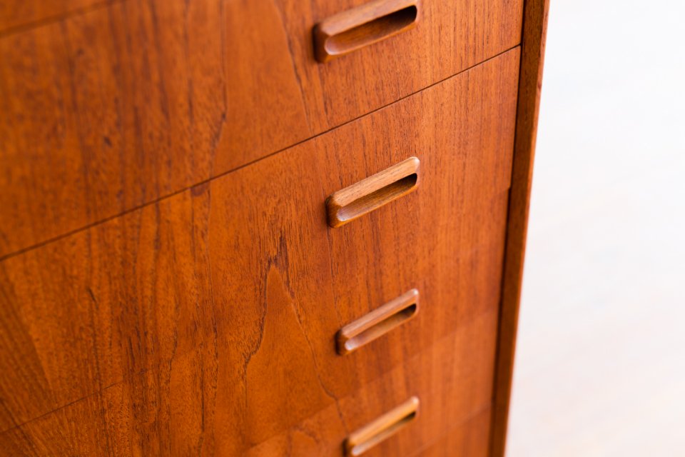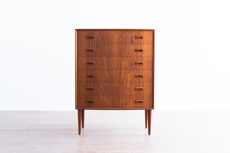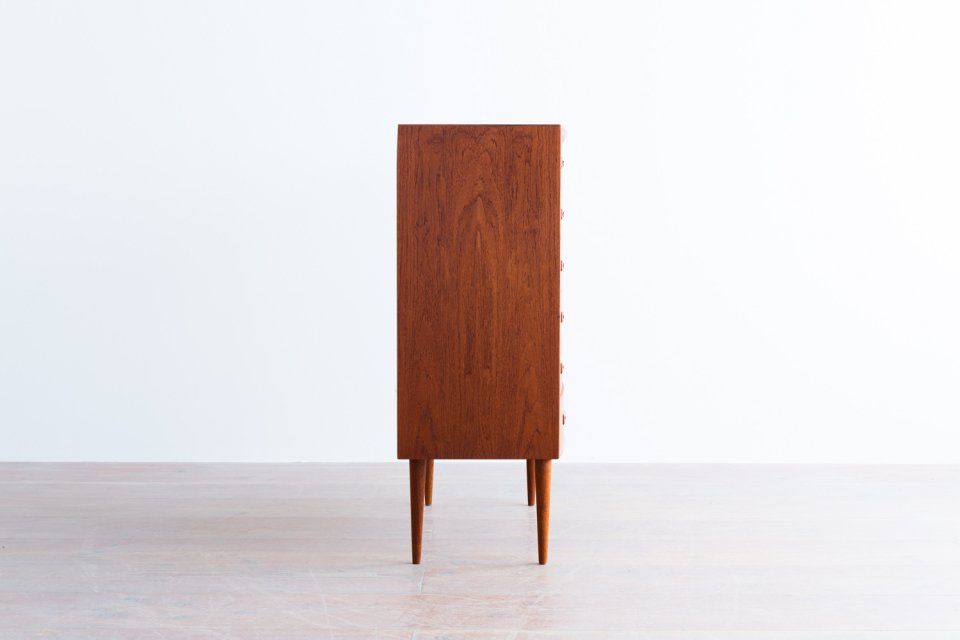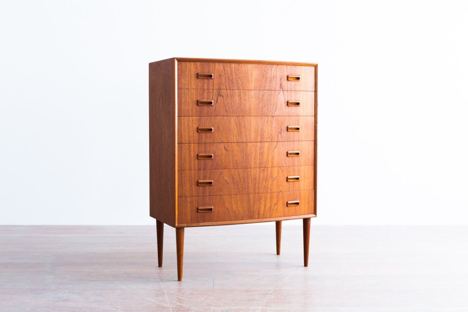 北欧ヴィンテージのチェストといえば、小間物を整理するのに重宝するスモールチェストから 大容量の7段チェストまで様々なバリエーションがありますが、こちらは衣類を収納するのに 大きさ、容量とも非常にバランスの良い6段チェスト。