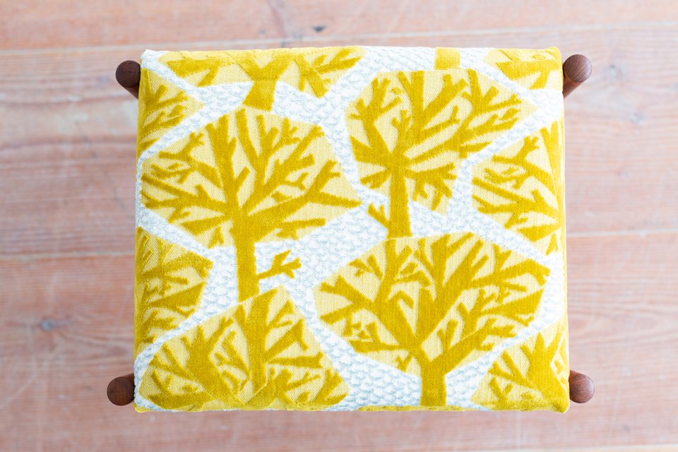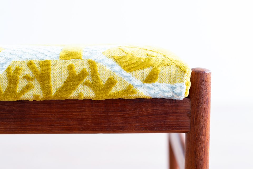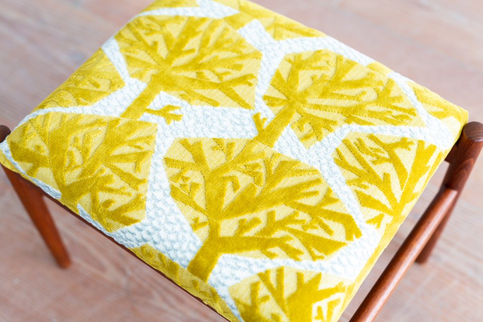 こちらは mina perhonen の貴重なアーカイブ生地で彩られた特別な一脚。