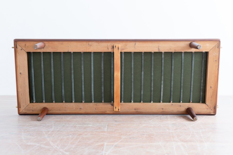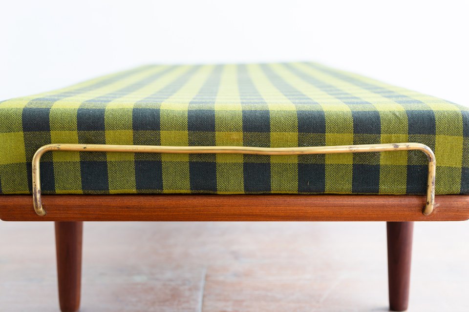 無駄のないシンプルなデザインはじつにウェグナーらしく、マットレスを固定するために 前後へ設けられた真鍮のステーの経年変化たるや、何ともココロをくすぐられます。