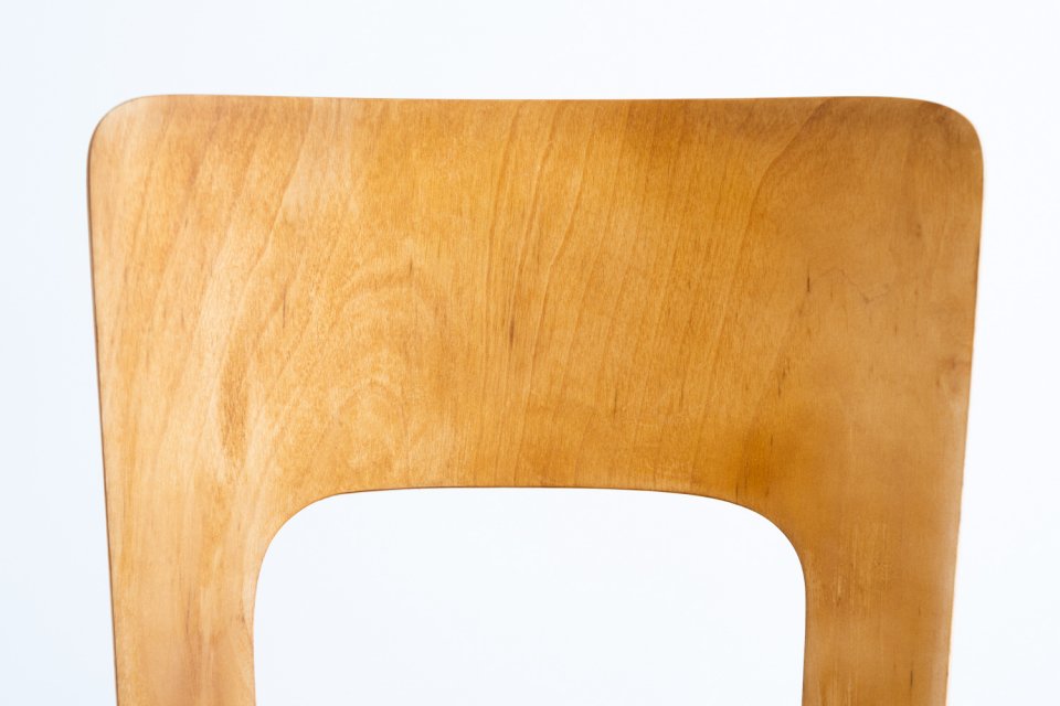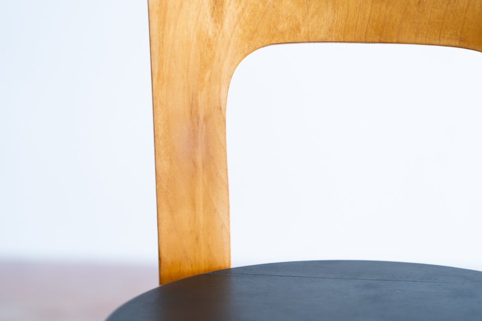 積層合板でしか成し得ない、薄くかつ穏やかに弧を描く背もたれが印象的な一脚です。