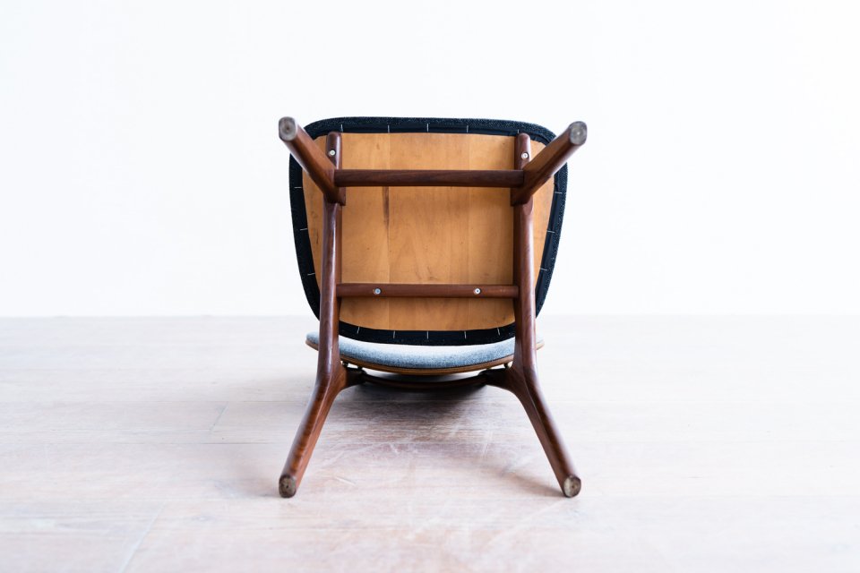 背もたれと座面はフレームから浮遊したようなフォルムに見せるため、接合部の工夫や 真鍮のパーツを合わせるなど細やかな配慮がなされています。
