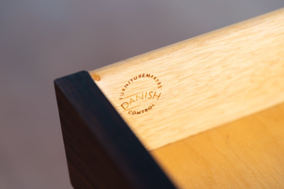 有機的なシルエットの家具を多く手がけたArne Wahl Iversenによりデザインされた こちらは、ほんの少しインセットされたチェスト側の仕上げが素晴らしい造形美を 生み出しており、そのコンパクトなサイズからは想像もつかないほど空間への影響力が大きい 彼の代表作の一つ。