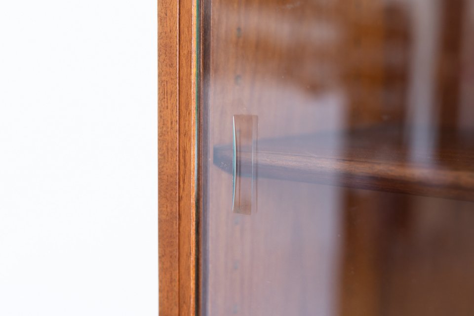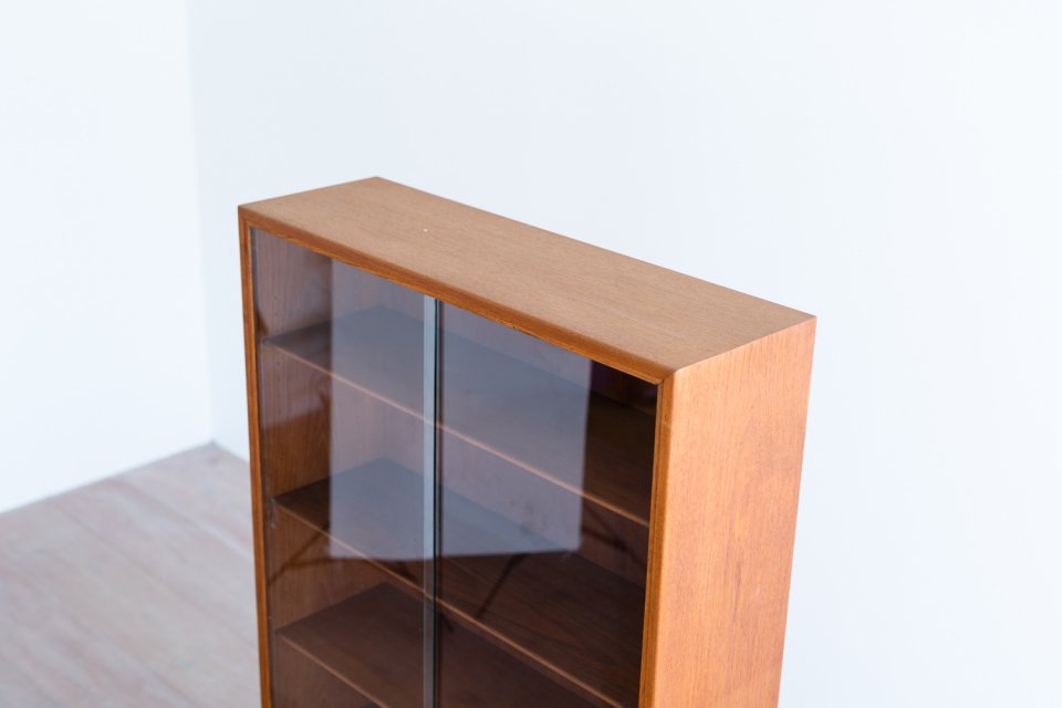 上部シェルフは十分な奥行きが確保されており、雑誌類を納めても綺麗にフィットして くれるし、棚板を好みの高さでセッティングして、文庫本やCDを縦二列で並べたって良い。 スタンダードなオープンタイプのものに比べて出会いの少ないガラス戸が備えられたこちらは、 食器を収めるのにも◎。