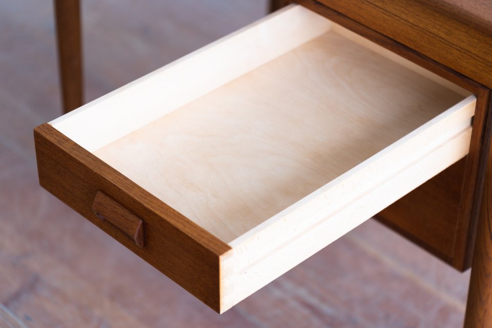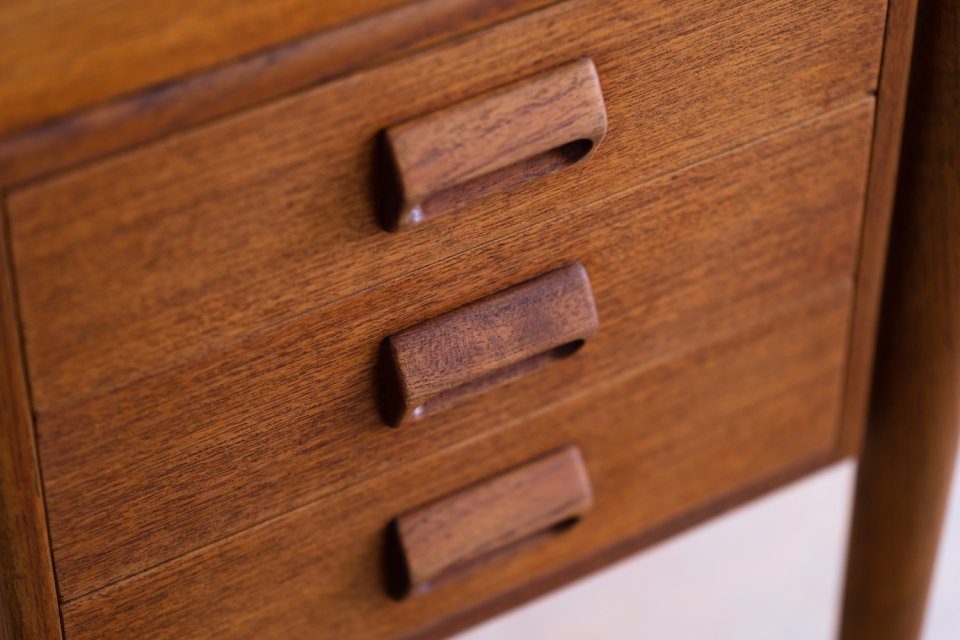 右側に引出しの備わった片袖デスクって、デンマークでは珍しいんですよね。