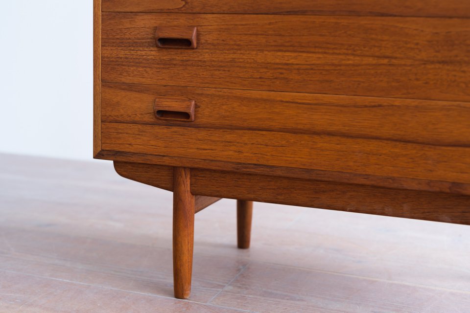 モーエンセンらしい直線的な収納部のデザインと、柔らかな印象を感じさせる脚部のマッチング がとても心地よく、もちろんデザインだけにとどまらないクオリティの高さと道具としての 実用性がしっかりと備わり、トータルレベルの高さがひしひしと伝わってきます。