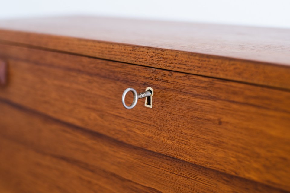 下部の収納スペースは、シーズンのメインワードローブをきっちり収められる容量で 何をどれくらい収納するかを緻密に計算し家具作りに徹したモーエンセンの配慮が しっかりと感じ取れます。