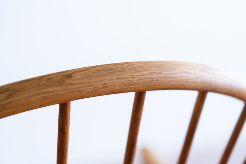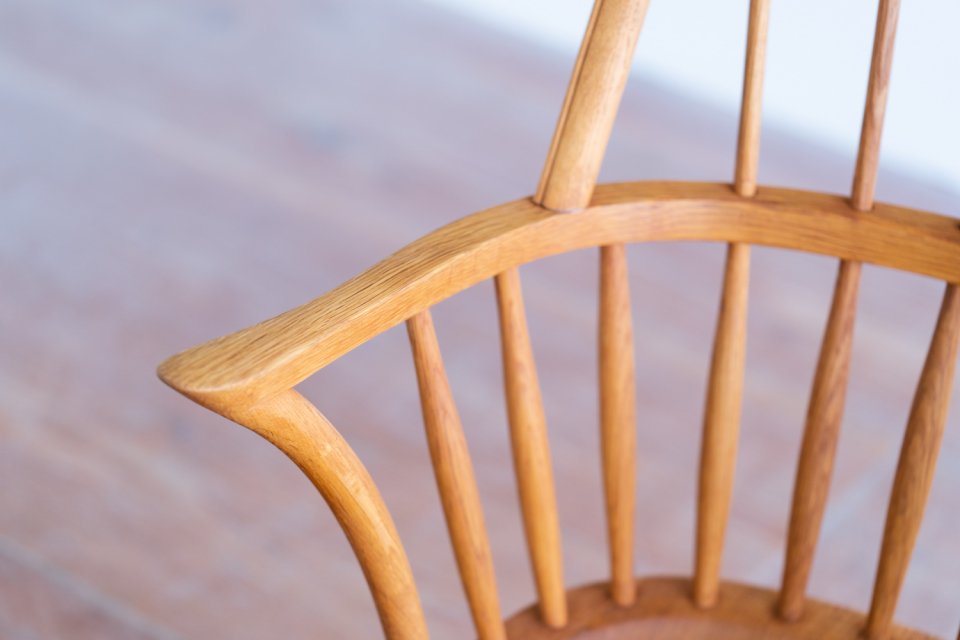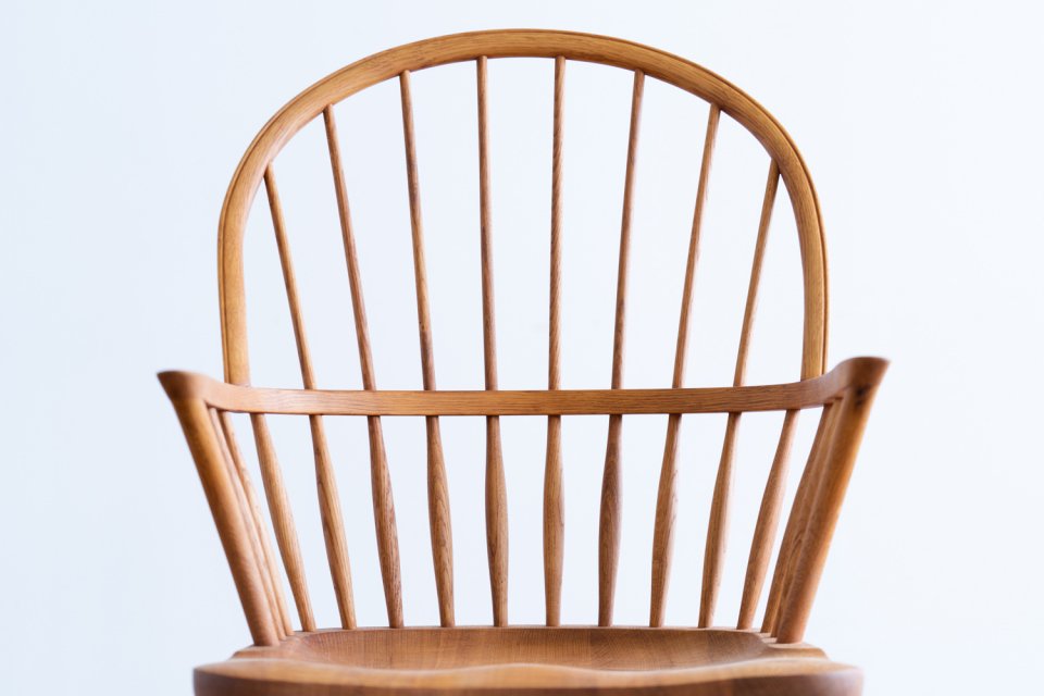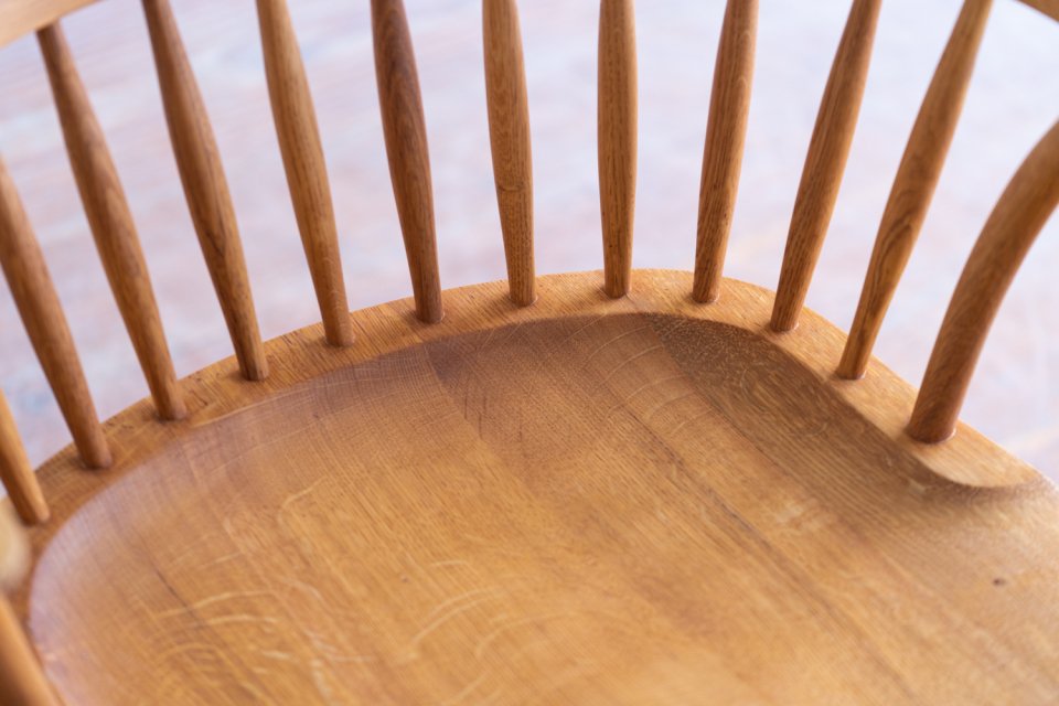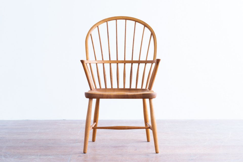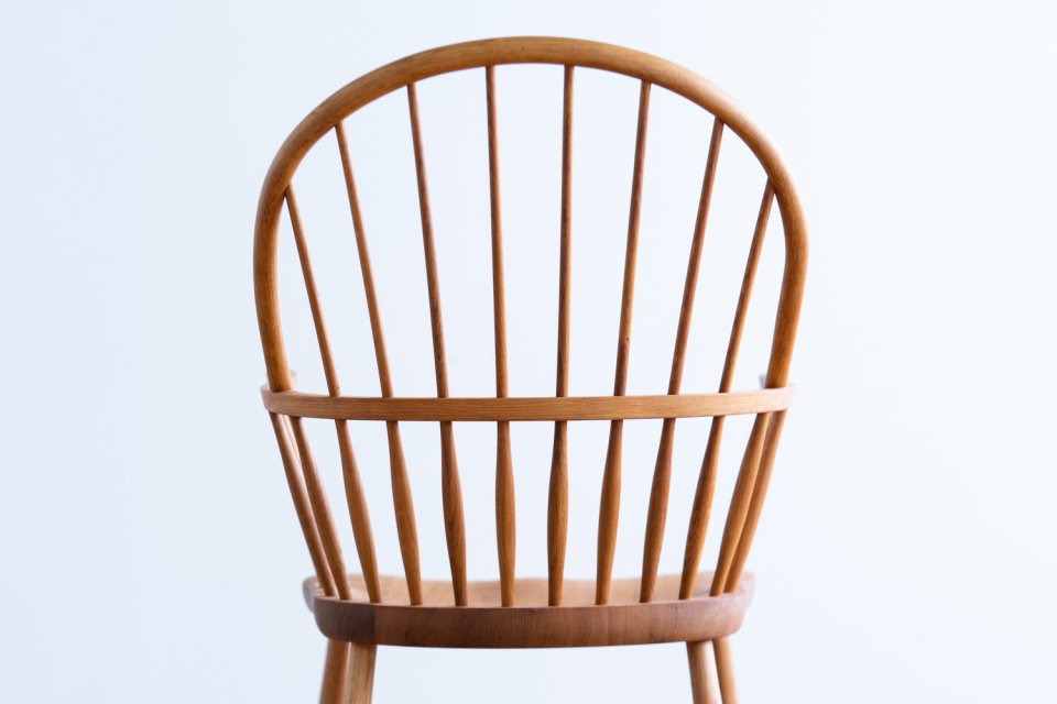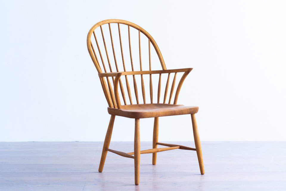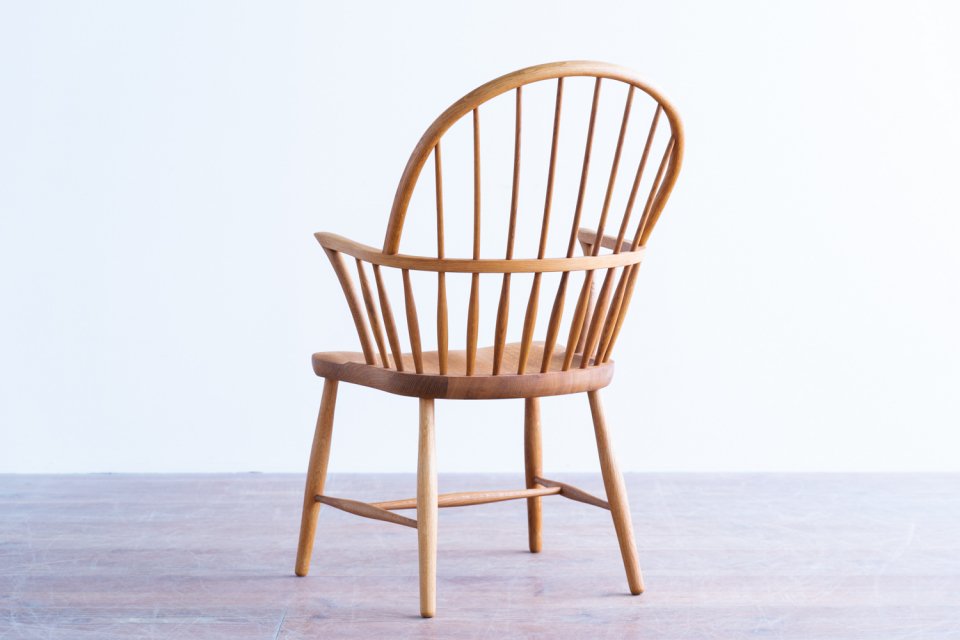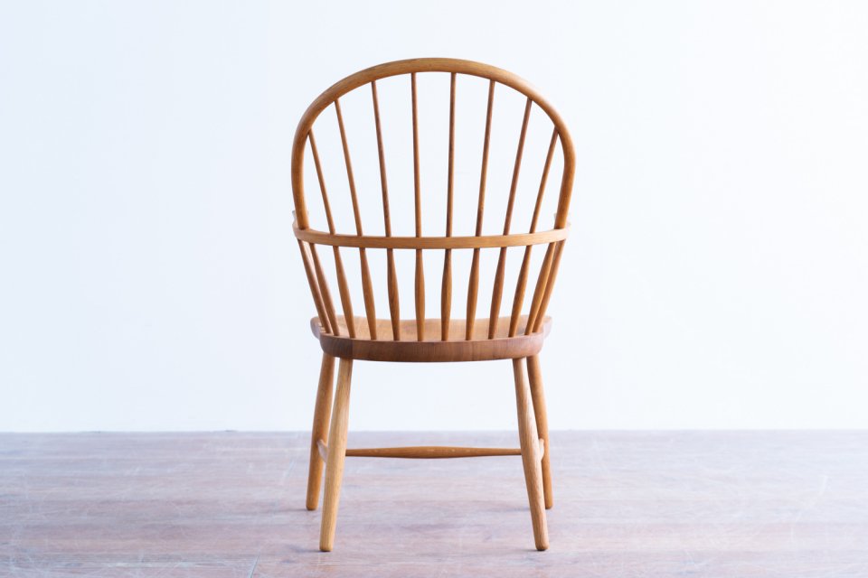 伝統的なウインザースタイルの家具デザインを踏襲しつつ、華美な装飾を排し、すっと控えめにデザイナーの個性を散りばめられたこちらは、フリッツ ヘニングセンによりデザインされたウインザーチェア。