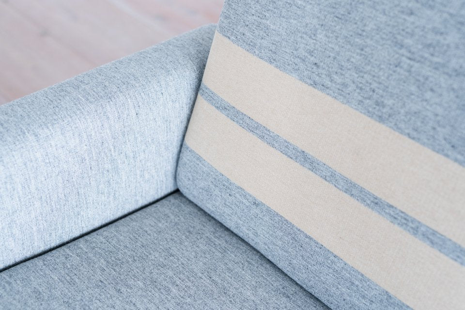 デザインは、木フレームソファならではの軽やかさとともに、 ファブリックに包まれたアームゆえの張り包みソファのごとく 柔らかなシルエットも持ち合わせていて。