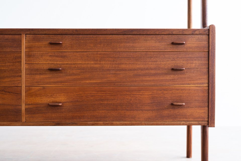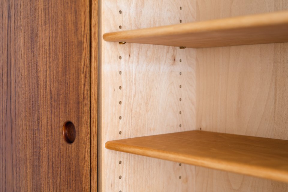 華美な装飾なくシンプルに配置された抽斗も、手の掛かりやすい高さや つまみの持ち易さたるや。細かな検証を重ねた上で完成された事が ひしひしと感じられます。