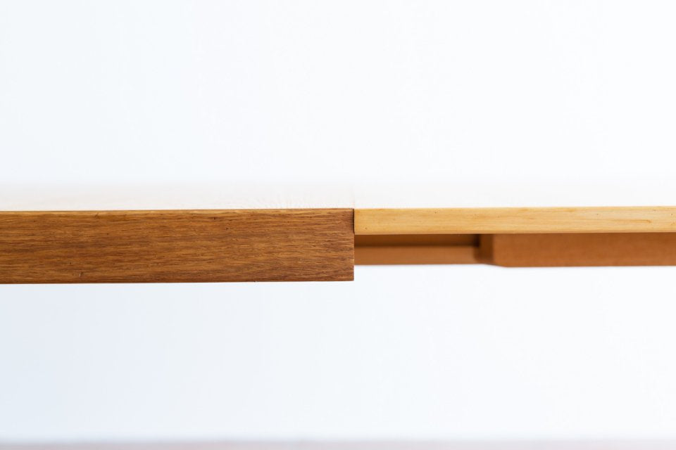 ラウンド型ゆえ大人数で使っても無駄なくスペースを活用出来ますが、こちらはゆとりの2枚エクステンション。