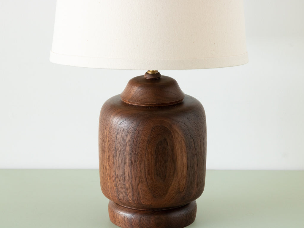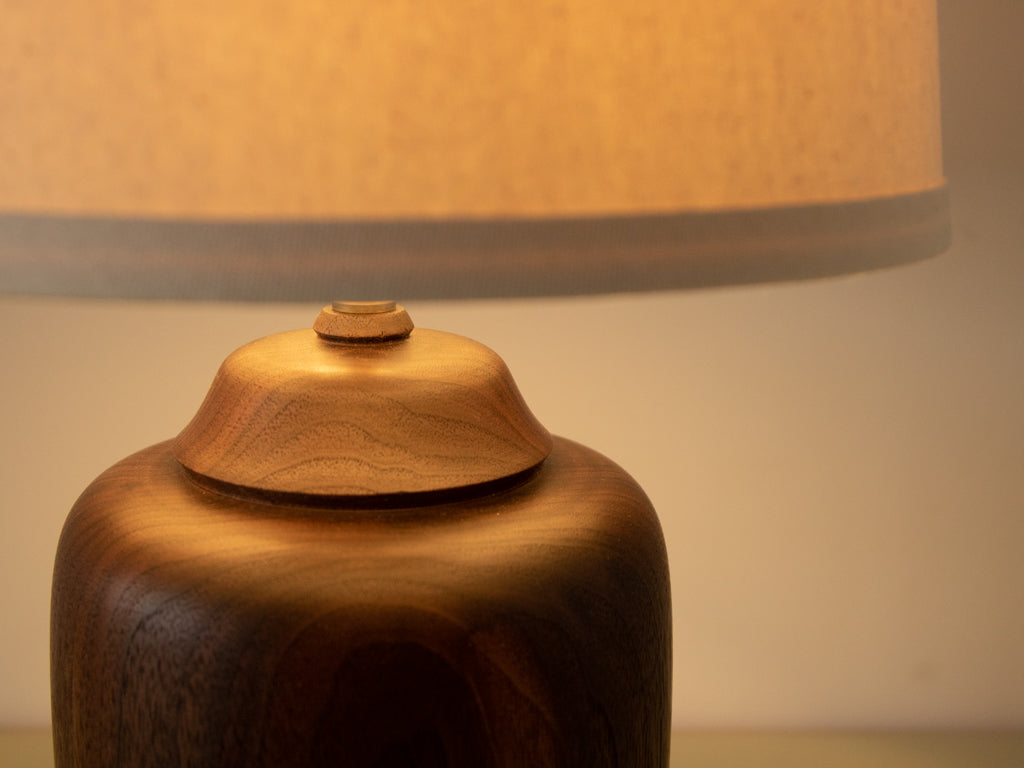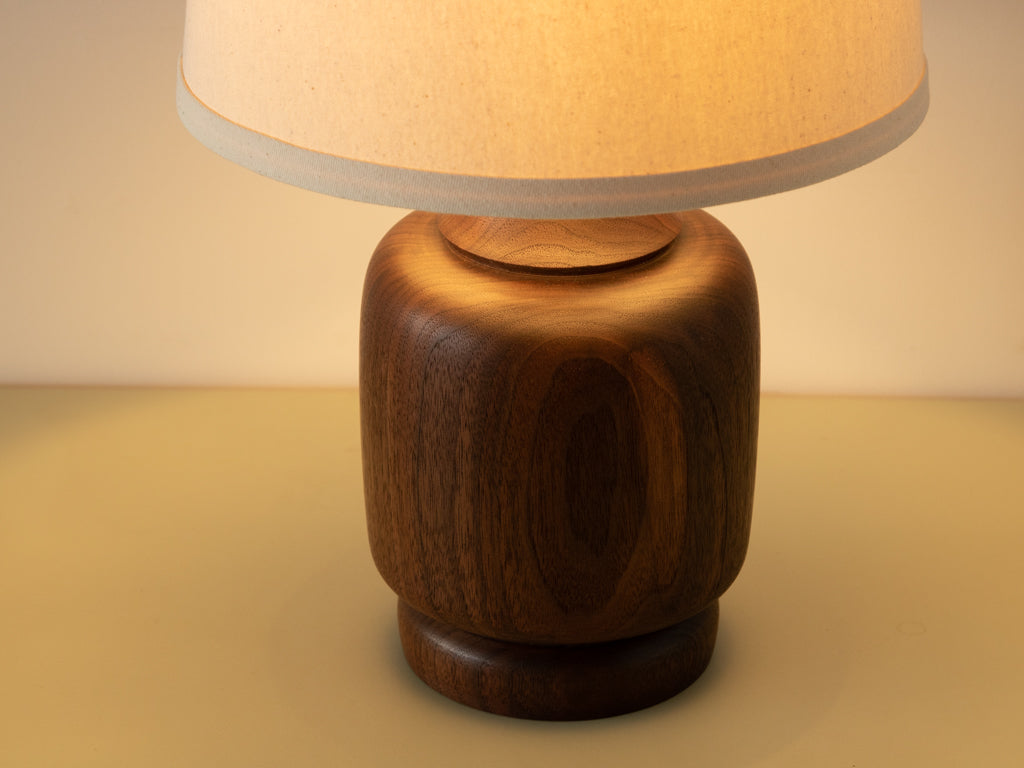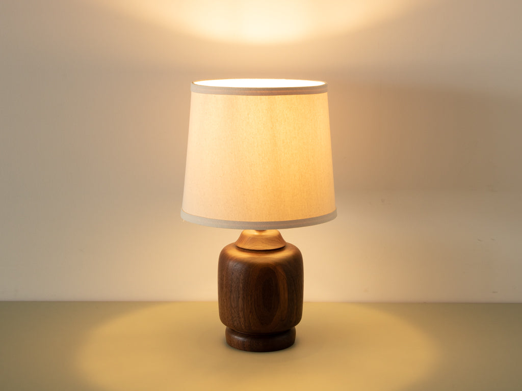 名古屋市に工房を構える〈稲熊家具製作所〉の木工旋盤によって作り出されるテーブルランプ。削り出されたボトム部分のフォルムは柔らかい曲線をもち、無垢材特有の心地の良い質感があります。
