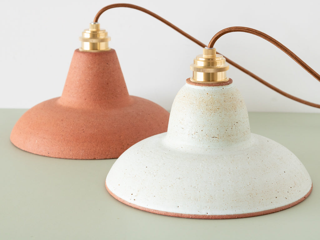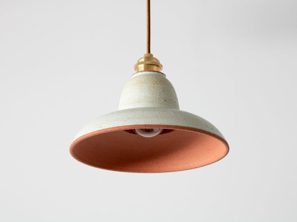 粒子の粗い赤土を使用することで生まれる、ざらっとした独特の表情が魅力。シェードタイプのペンダントランプでメリハリのある光を綺麗に作ることができ、食卓など一層心地の良い空間になります。