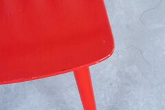 デンマークの生活共同組合FDB で製作されたこのチェアは、フォルケ パルソンにより デザインされたもので、キッチンチェアとも呼ぶべきコンパクトなサイズと、丸っとした 背がなんとも愛らしい一脚です。