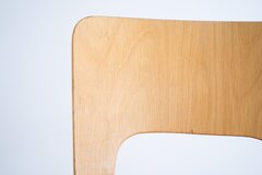 無垢材では成し得ない、薄くかつ穏やかに弧を描く背もたれが印象的な一脚です。