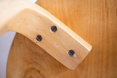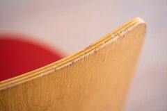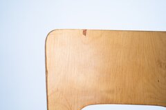 無垢材では成し得ない、薄くかつ穏やかに弧を描く背もたれが印象的な一脚です。