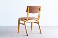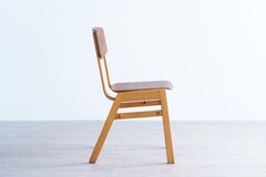 座面や背面と、脚などの骨組みとで樹種と色が切り替えられた可愛らしいデザインながら、そのフォルムには幼さがなく、しっかりした作りで安心してインテリアに使える作品です。