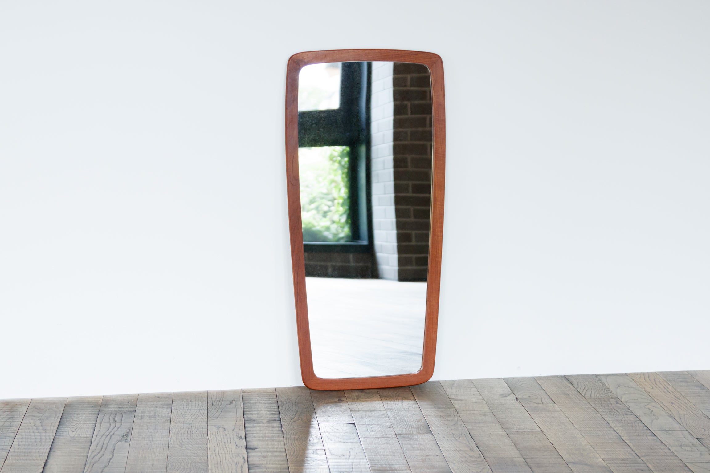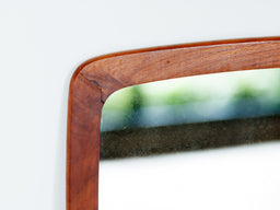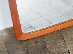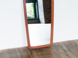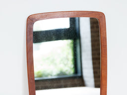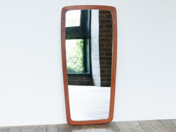 縦長い台形の形をしたこちらのミラーは、木製の枠も微妙な曲線を描き、その絶妙なフォルムバランスが美しい1台。