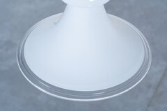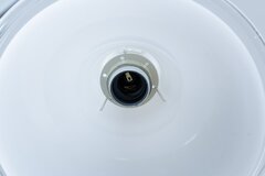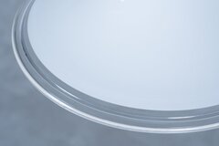 乳白色のガラス上にクリアガラスを重ねて熔着する技法で作られ、上方へ拡散される光は独特な柔らかさを持ち、下方へは均等に機能的に光が拡散されます。