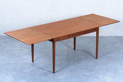 デンマークビンテージの代名詞とも言える、エクステンション機能付きのダイニングテーブル。