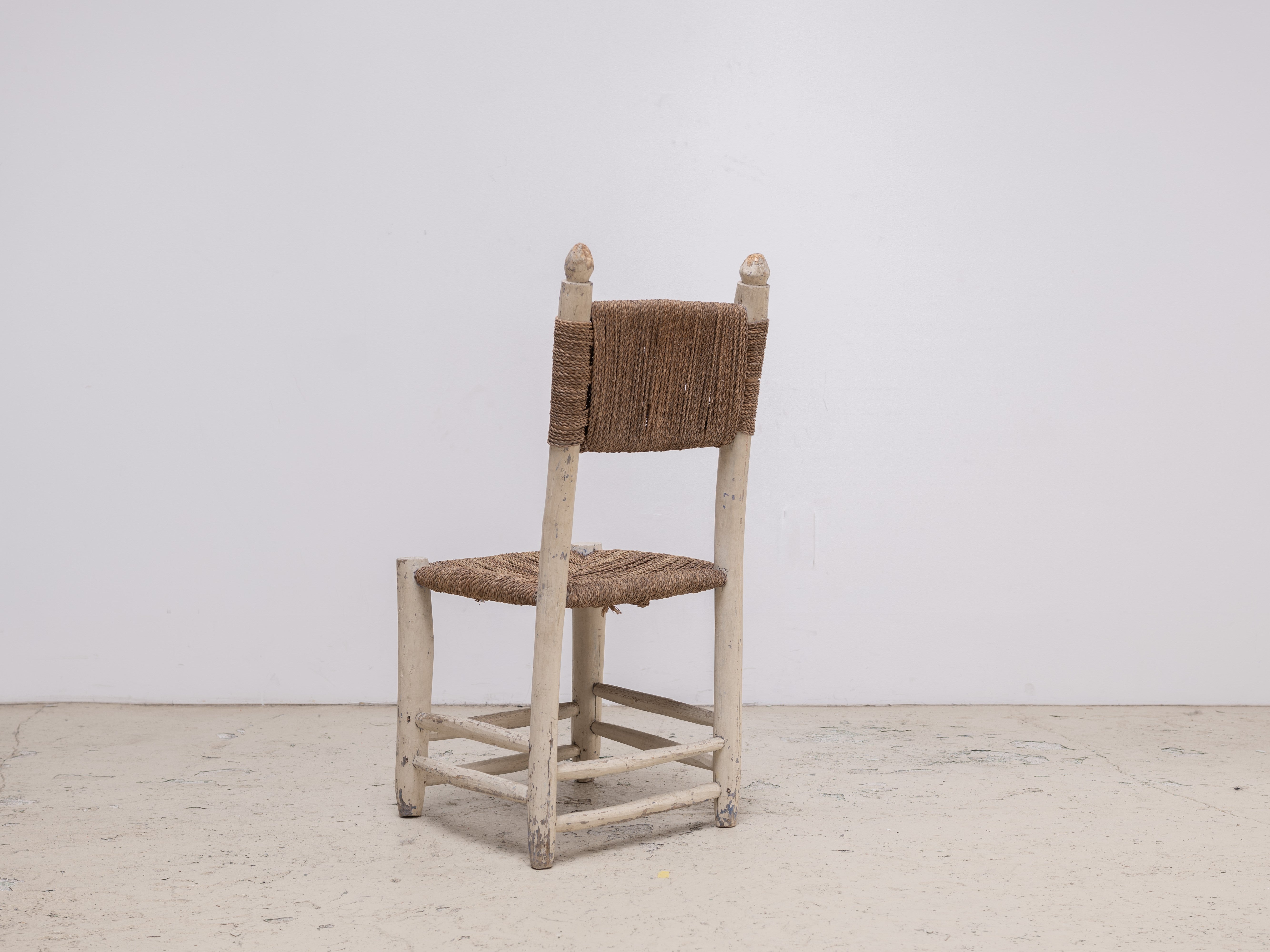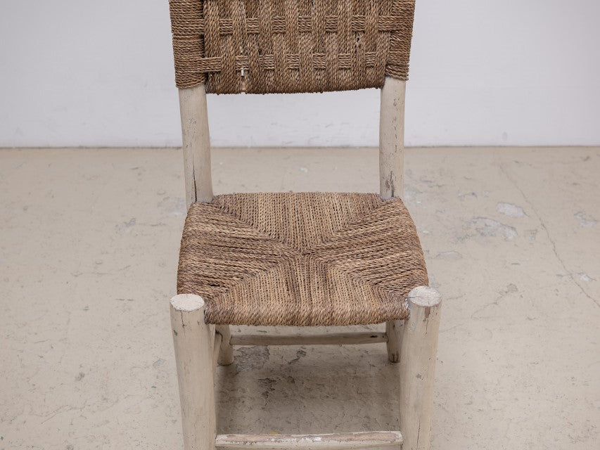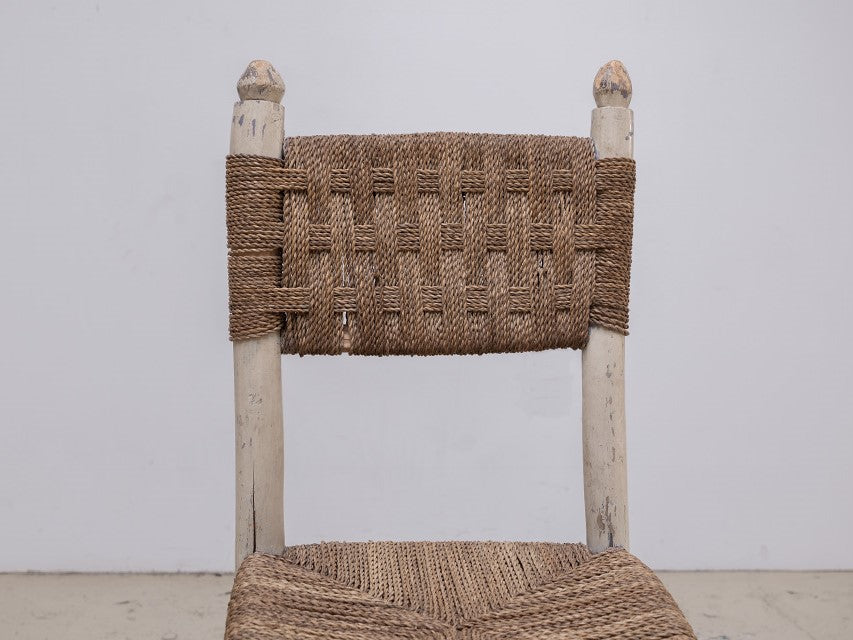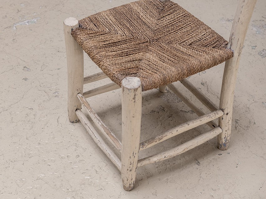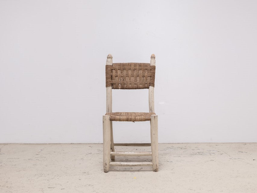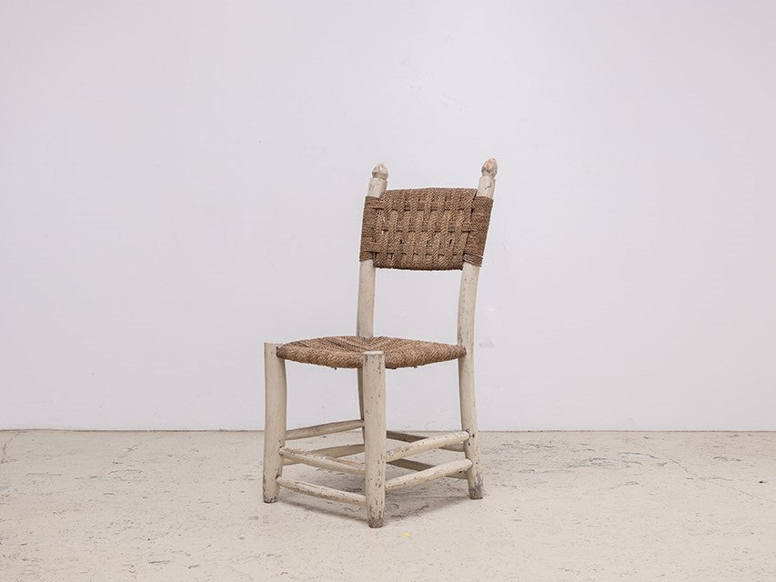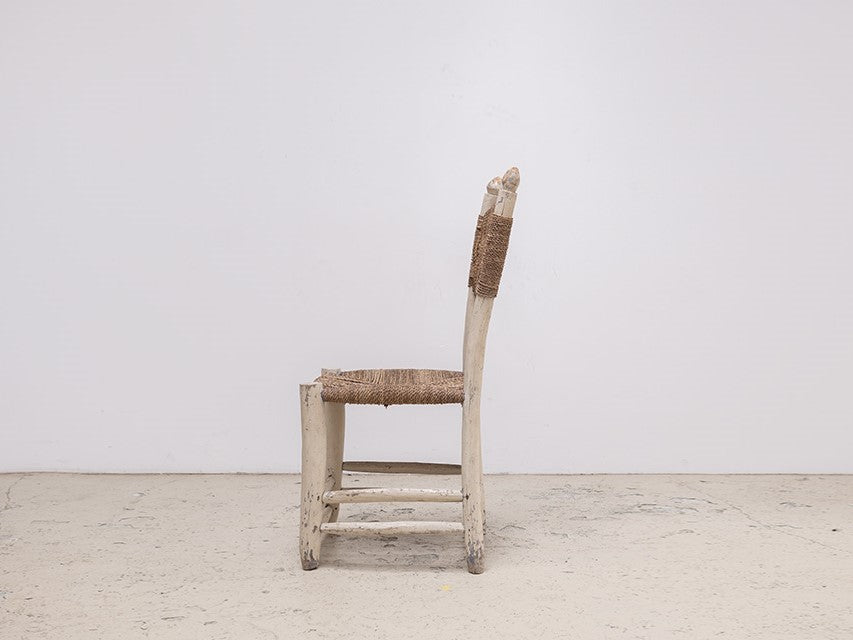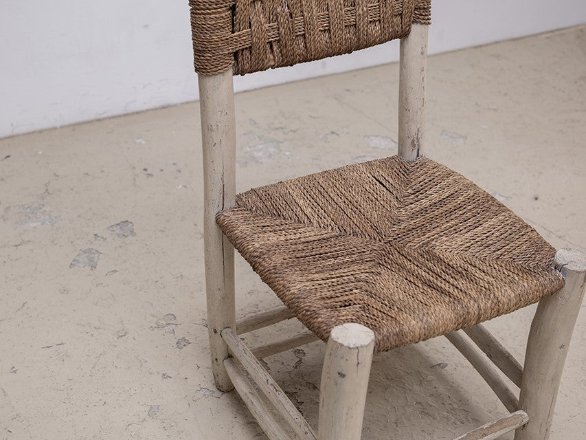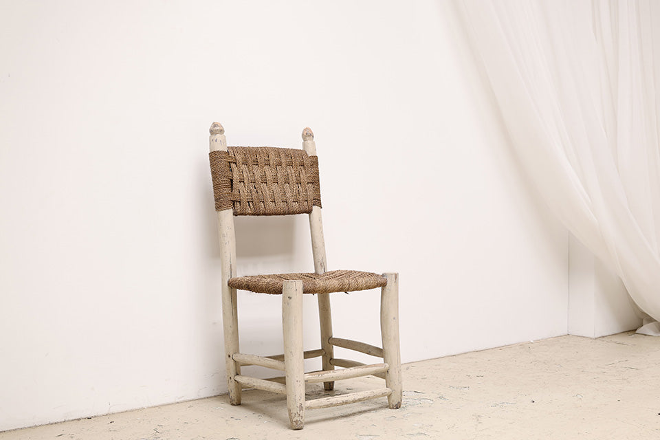 北アフリカからのダイニングチェア。後のデザイナーに多くの影響を与えているアフリカンアンティーク。手作業による無骨ながら温かみを感じるデザインや淡い色の着色は、ヨーロッパアンティークとは別の価値観から生み出された、プリミティブ系作品の中でも完成度の高い作品。