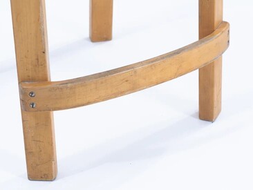 20世紀を牽引したフィンランドの建築家アルヴァ・アアルトによる優美な脚部の曲線が特徴のL-legシリーズ。中でもこの脚の長いハイチェアK65は、ハイトップテーブルやバーカウンターに最適な高さです。低めのシートバックは背中を適度に支え、カーブした足元のレールは完璧なフットレストとして機能します。