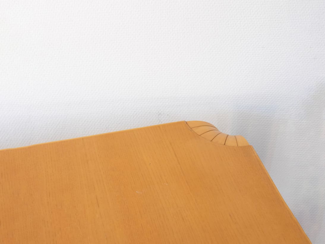 現在では大変手に入りづらいこちらのテーブルは、Xレッグとも呼ばれる特徴的な脚はLレッグを何層にも立体的に扇状に重ね合わせて作られたものです。定番のLレッグよりもエレガントな印象を与えてくれます。